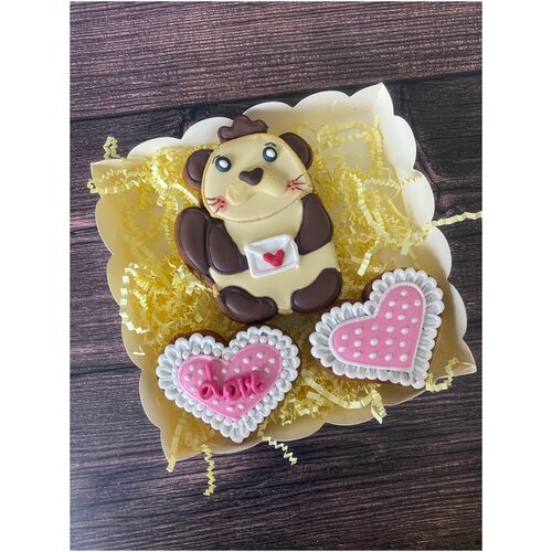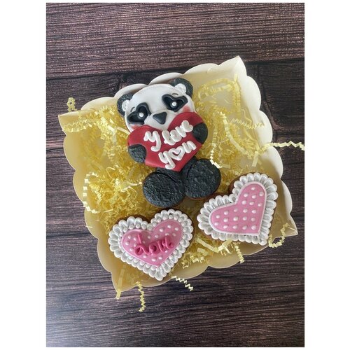Подарочный набор имбирных пряников 3шт. "Панда с сердечками" на 8 марта от кондитерской Fёdor Kotoff