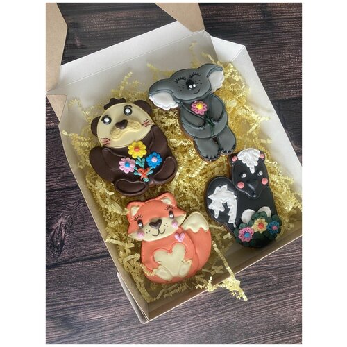 Подарочный набор имбирных пряников 4 шт. "Весенние зверушки" на 8 марта от кондитерской Fёdor Kotoff