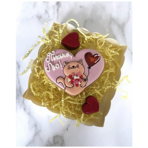 Подарочный набор имбирных пряников валентинок, сердечек ручной работы 3шт. на 14 февраля, день всех влюблённых "Котик" от кондитерской Fёdor Kotoff