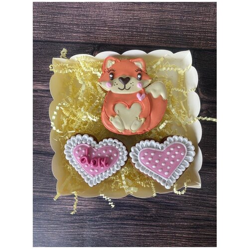 Подарочный набор имбирных пряников 3шт. "Лисичка с сердечками" на 8 марта от кондитерской Fёdor Kotoff