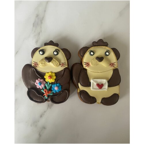Пряники имбирные Милые бобрята 2 шт на день всех влюбленных и 8 марта от кондитерской Fёdor Kotoff