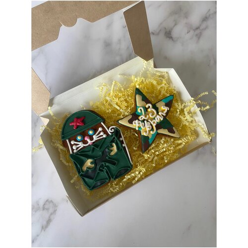 Подарочный набор имбирных пряников ручной работы 2 шт. на 23 февраля, День защитника Отечества "Котик с 23!" от кондитерской Fёdor Kotoff