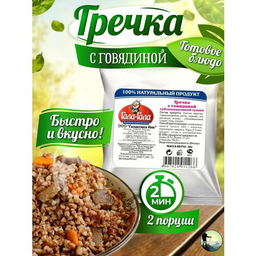 Гречка с говядиной "Гала-Гала" 40 г, 2 упаковки / Готовая еда / Блюдо быстрого приготовления / Туристическая еда / Еда в поход / Еда с собой / Сублим