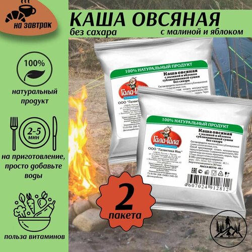Еда сублимированная в поход Каша овсяная с малиной и яблоком без сахара "Гала-Гала" 40 г 2 упаковки
