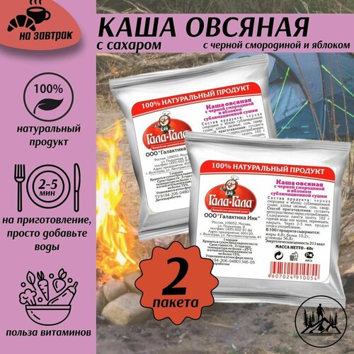 Еда сублимированная в поход Каша овсяная с черной смородиной и яблоком "Гала-Гала" 40 г, 2 упаковки