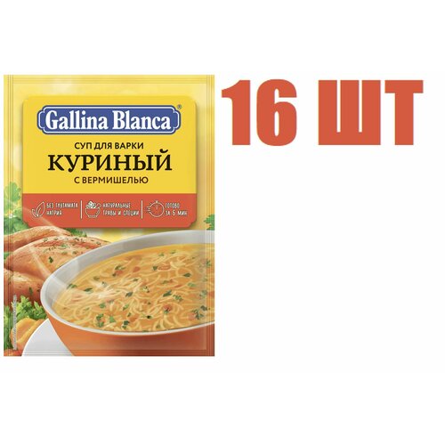 Суп быстрого приготовления, "Gallina Blanca", Куриный с вермишелью, 62г 16 шт
