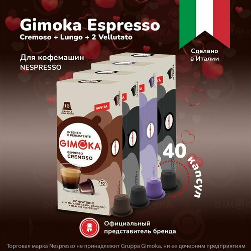 Кофе в капсулах Gimoka Espresso Cremoso, 2шт Vellutato и Lungo,40 капс, 4 упаковки, для Неспрессо