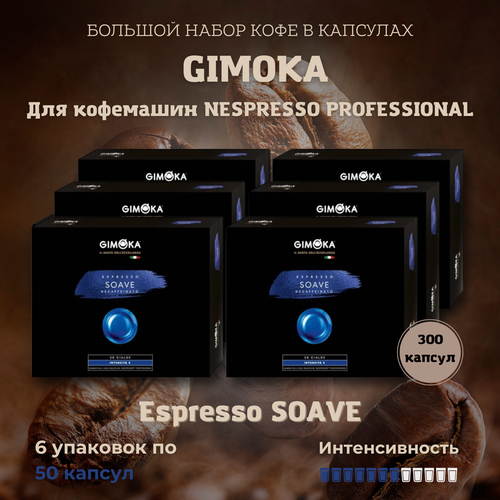 Кофе в капсулах Gimoka Soave, жареный, молотый, для системы кофемашин Nespresso Professional, 6 упаковок по 50 шт. / Капсульный для Неспрессо