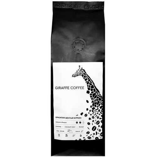 Кофе в зернах 1 кг Giraffe Coffee Бразилия Жёлтый Бурбон, Арабика 100%, натуральный зерновой кофе, свежеобжаренный, кофе для кофемашины