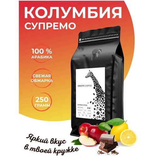 Кофе в зернах 1 кг Giraffe Coffee Колумбия Супремо, Арабика 100%, натуральный зерновой кофе, свежеобжаренный, кофе для кофемашины