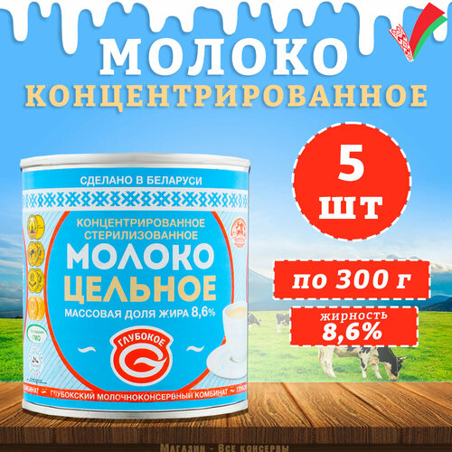 Молоко концентрированное цельное, 8,6%, Глубокое, 5 шт. по 300 г