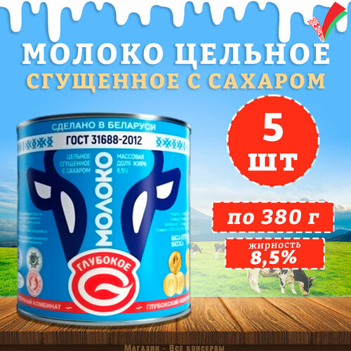 Молоко сгущенное с сахаром 8,5%, Глубокое, ГОСТ, 5 шт. по 380 г