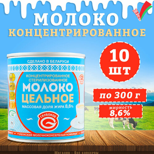 Молоко концентрированное цельное, 8,6%, Глубокое, 10 шт. по 300 г