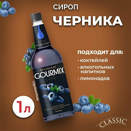 Сироп Gourmix Черника 1л ПЭТ. Для лимонада, кофе и коктейлей. Топпинг Гурмикс для десерта. Для кофеен и для дома.