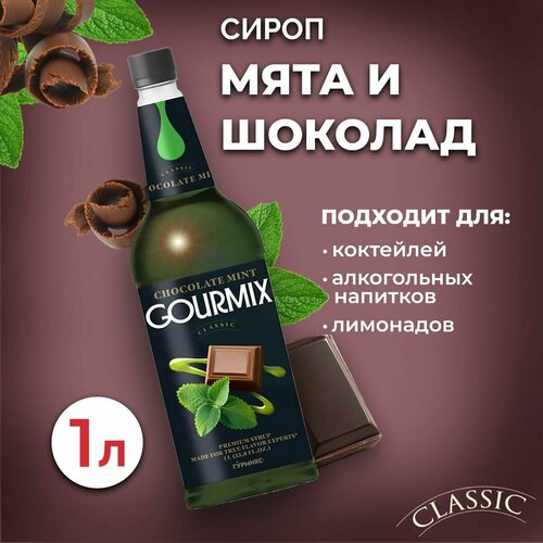 Сироп для кофе, чая и коктейлей Gourmix (Гурмикс) Мята и шоколад 1л. Для кофеен и для дома.