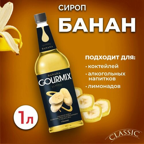 Сироп для кофе, чая и коктейлей Gourmix (Гурмикс) Банан 1л. Для кофеен и для дома.