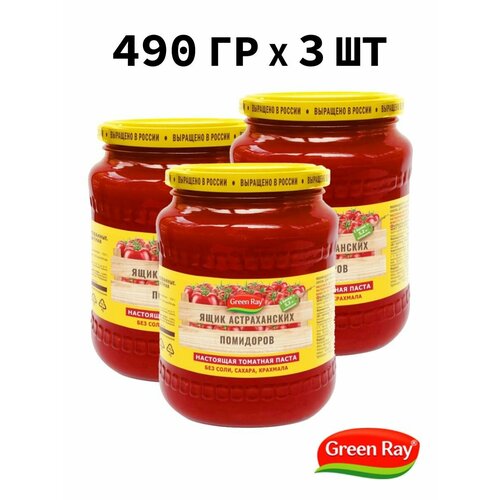 Томатная паста концентрированная Ящик Астраханских помидоров, Green Ray, (набор 4шт по 490гр)