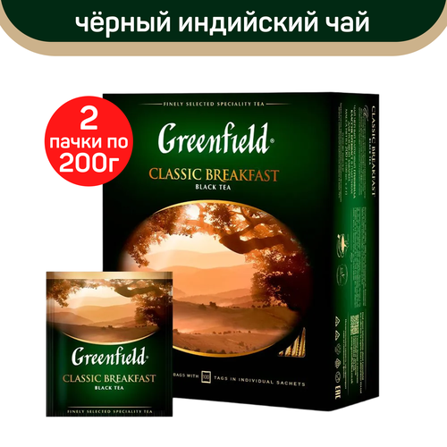 Чай черный Greenfield Classic Breakfast, 2 упаковки по 100 пакетиков