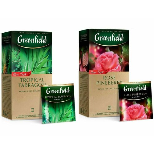 Зеленый чай оолонг Tropical Tarragon/чай черный Rose Pineberry Greenfield 2шт по 25 пак