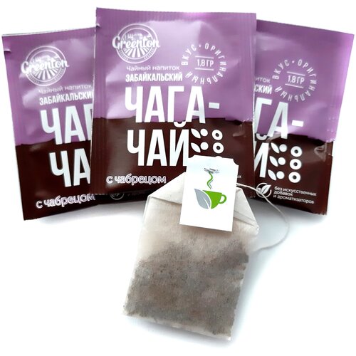 Чага чай с чабрецом в пакетиках, 25 шт, березовая чага, успокаивающий, от кашля, для иммунитета чайный напиток в сашетах, натуральный, Greenton, 45 г