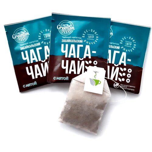 Чага чай с мятой в пакетиках, 25 шт, березовая чага, успокаивающий очищающий натуральный чайный напиток в сашетах, 25 фильтр-пакетов, Greenton, 45 г