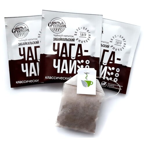 Чага чай в пакетиках, 25шт, березовая чага для иммунитета, витаминный, натуральный чайный напиток в сашетах, 25 фильтр-пакетов, Greenton, 45 г