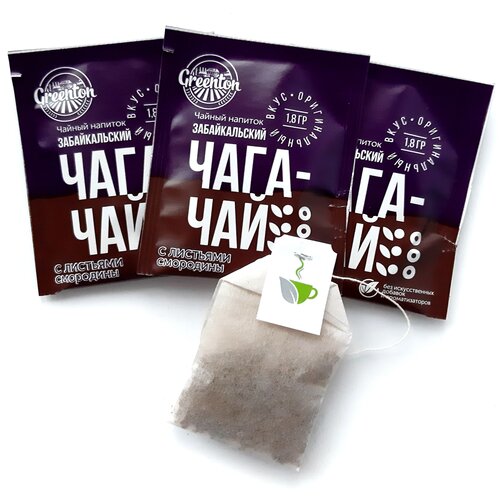 Чага чай в пакетиках с черной смородиной, 25 шт, березовая чага для иммунитета, натуральный, тонизирующий чайный напиток в сашетах, Greenton, 45 г