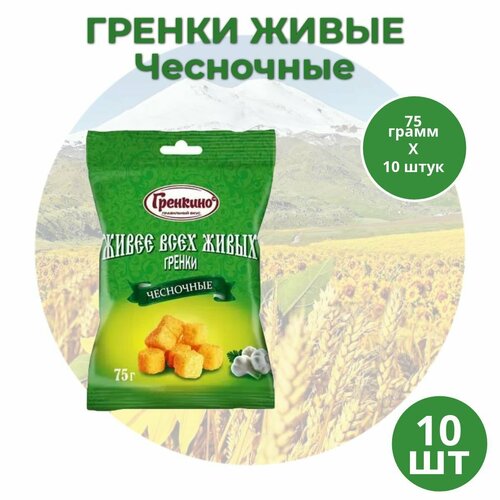 Гренки 10 штук по 75 грамм Сухарики Живые снеки "Чесночные" ТМ "гренкино"