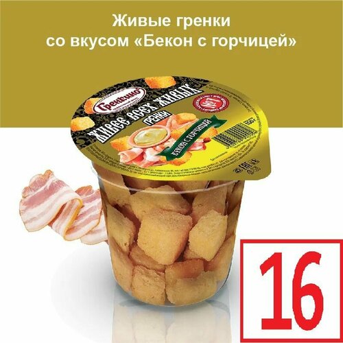 Стакан Гренки 16 штук по 100 грамм Сухарики живые снеки "Бекон с Горчицей" ТМ "гренкино"
