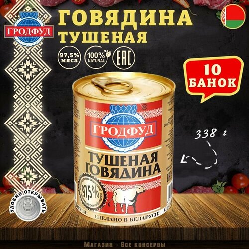 Говядина тушеная Гродфуд, 97,5% мяса , 338 гр (Беларусь), Набор из 10 шт