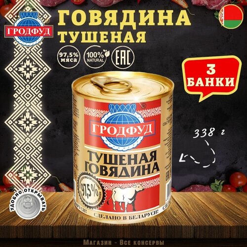 Говядина тушеная гродфуд 1014г.(338г по 3 шт.) Беларусь