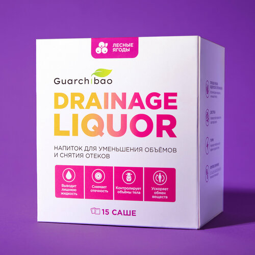Дренажный напиток Guarchibao Drainage Liquor со вкусом Лесных ягод для снятия отеков и уменьшения объемов, для похудения, 1 упаковка (15 саше)