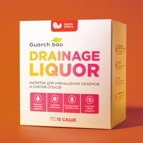 Дренажный напиток Guarchibao Drainage Liquor со вкусом Арбуза и Дыни для снятия отеков и уменьшения объемов, для похудения, 1 упаковка (15 саше)