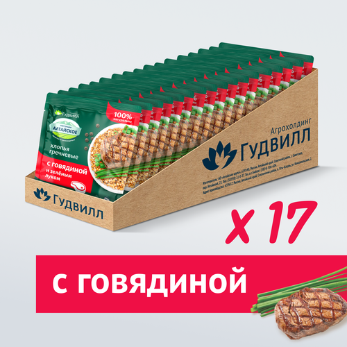 Хлопья гречневые хлопья с говядиной и луком Гудвилл не требующие варки, 40 грамм, 17 шт