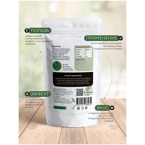 Фруктоза (натуральный растворимый сахарозаменитель, органический подсластитель, кристаллический порошок), 500 грамм