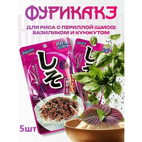 Приправа Хагоромо 26 г Фурикакэ для риса с периллой (шисо) базилик и кунжут 5 шт, Hagoromo, Япония