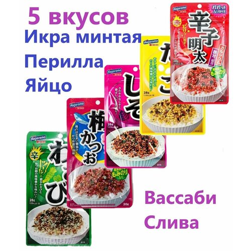 Приправа Хагоромо 5шт №0 Фурикакэ для риса с Вассаби, сливой, периллой, яйцом и икрой минтая Hagoromo, Япония