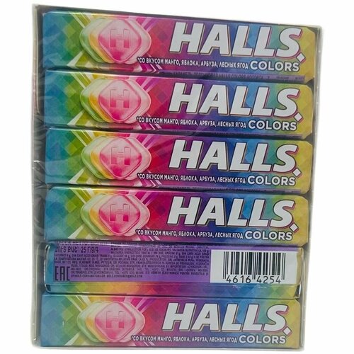 Леденцы Halls "Colors", ассорти, 12 штук по 25 г