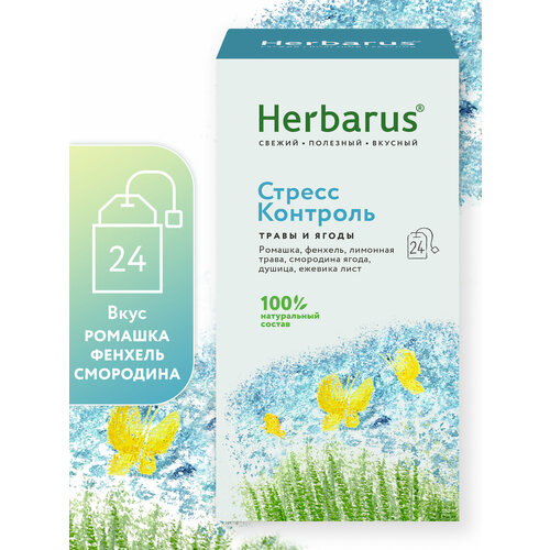 Травяной чай Herbarus "Стресс Контроль", в пакетиках, без кофеина, 24 шт