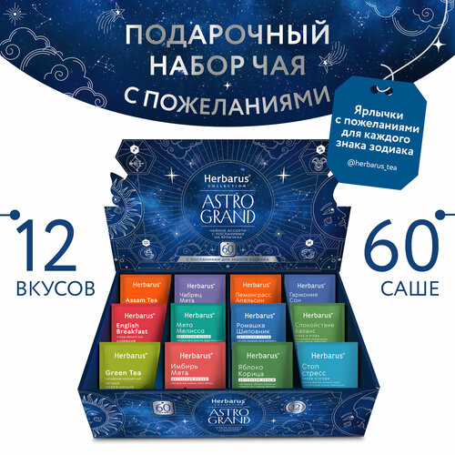 Подарочный набор чая в пакетиках Herbarus Ассорти ASTRO GRAND, 12 вкусов, 60 саше