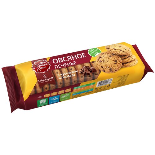 Печенье Хлебный Спас Овсяная коллекция овсяное с кусочками шоколада, 250 г