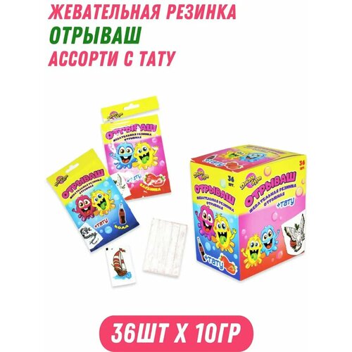 Жевательная резинка отрываш Ассорти с тату, 36 шт. по 10 гр , Холодок