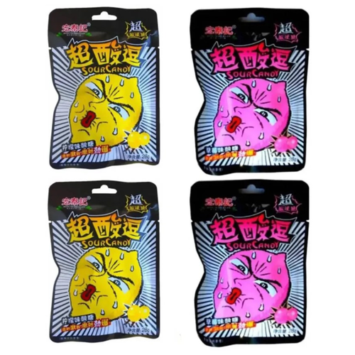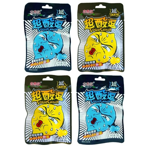 Набор кислых леденцов Супер кислый Лимон 2 шт. по 21 гр., Клубника 2 шт. по 21 гр., Китай.