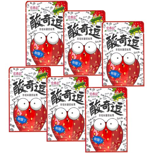 Кислая леденцовая карамель Hong Tai Kee Sour со вкусом клубники (6 шт. по 26 гр.)