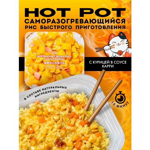 Саморазогревающийся риc Hot Pot быстрого приготовления с курицей в соусе карри, по-японски, не острый 320 г.
