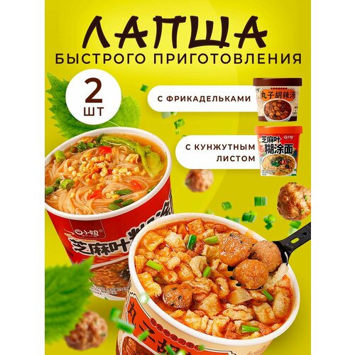 Лапша быстрого приготовления с кунжутным листом и острый суп с фрикадельками быстрого приготовления 2 шт.