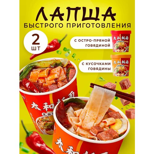 Лапша быстрого приготовления с остро пряной говядиной и с кусочками говядины, 2 шт.