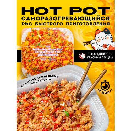 Саморазогревающийся рисплов Hot Pot быстрого приготовления с говядиной и красным перцем острый