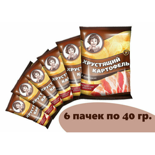 Чипсы Хрустящий картофель, чипсы со вкусом бекона, произведены из свежего картофеля, 40 г, 6 пачек