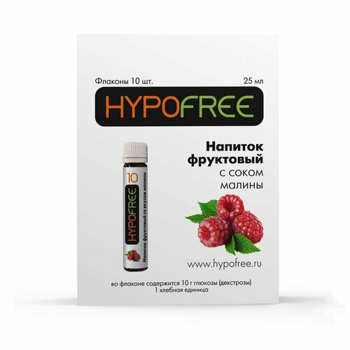Напиток малиновый Гипофри (HYPOFREE) для купирования гипогликемии при сахарном диабете 1 XE 10туб